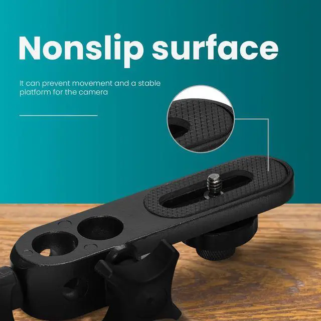 Underpin your photography setup with the Flashpoint Camera Platform for Flex Arm, a must-have accessory for securely supporting your lightweight camera or other photography equipment. Constructed from durable, high-quality materials, this sturdy camera platform is designed to withstand the rigors of frequent use. The platform is equipped with a captive, sliding 1/4"-20 camera screw, ensuring a secure fit for your camera. The non-slip surface provides additional stability, reducing the risk of accidental slips or movement during your shoots. Incorporating two 5/8" receivers, this versatile camera platform can be easily attached to a flex arm or a stud, offering you the flexibility to adjust your camera's position as required.