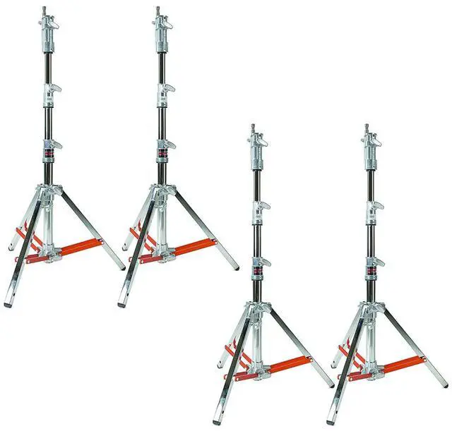 Discover the Matthews 6.4 ' Low Boy Double Riser Combo Stand, Chrome, available in a convenient 4-pack, designed to meet the demanding needs of professional photographers and videographers. This robust stand boasts a wider footprint and extended legs, ensuring enhanced stability for your equipment, even on uneven surfaces. Crafted with precision, it features a Rocky Mountain Leg, allowing for easy leveling on challenging terrain. Constructed from high-quality steel components, this stand promises durability and longevity, making it a reliable choice for your studio or on-location shoots. Unlike stands made with plastic parts, the Matthews Low Boy Double Riser Combo Stand is built to withstand the rigors of frequent use, providing years of dependable service.