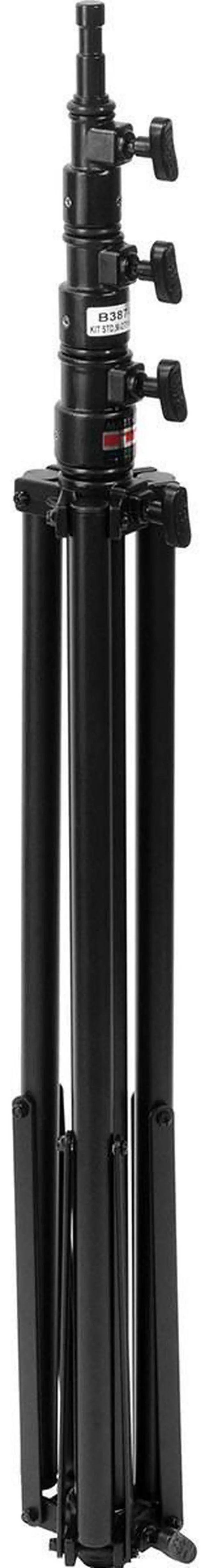 From the bustling studio floor to the dynamic on-location shoot, the Medium Duty Maxi Aluminum Kit Stand, Black, stands as a testament to professional-grade equipment. Crafted with precision from high-quality, sturdy aluminum, this stand boasts exceptional durability that can effortlessly support a load capacity ranging from 19.1 to 25 lbs. Its robust construction ensures reliable performance under the weight of various lighting equipment, making it an indispensable tool for photographers and videographers alike. The versatility of this stand is unmatched, with its ability to accommodate a wide array of lighting setups.