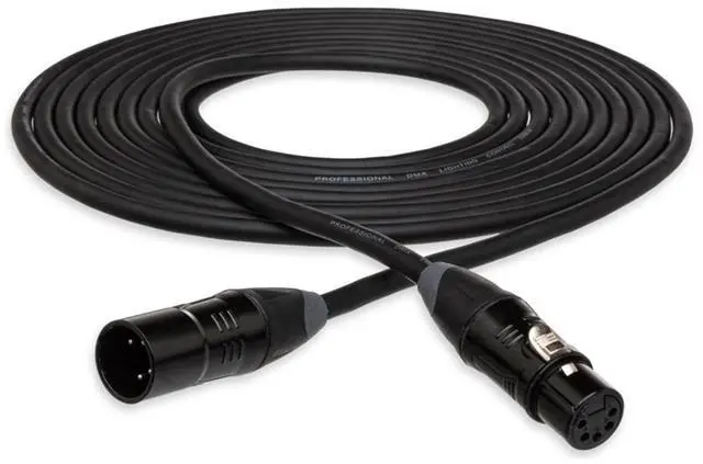 Let the Hosa 700 Series DMX-710 10' 5-Pin XLR Male to 5-Pin XLR Female DMX Cable elevate your professional lighting and audio setups with its exceptional performance and reliability. Engineered for the discerning professional, this cable features robust 5-Pin black nickel XLR connectors that ensure secure and stable connections, even in demanding environments. The flexible PVC jacket enhances durability while maintaining the cable's ease of use, allowing for seamless integration into any setup. Inside, the cable boasts a 20 AWG Oxygen-Free Copper (OFC) conductor, which guarantees optimal signal clarity and conductivity.
