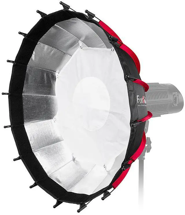 Take your photography to the next level with the EZ-Pro DLX 24" Collapsible Beauty Dish and Softbox, a versatile lighting modifier designed for the discerning portrait, commercial, beauty, and fashion photographer. This innovative product combines the directional lighting of a beauty dish with the soft, diffused glow of a softbox, offering a controllable para beauty light that can be adjusted for varying degrees of light spread, ensuring you capture the perfect mood for every shot. Crafted with high-quality, reflective silver material, the interior of the EZ-Pro DLX maximizes light output, creating an even, wraparound light that flatters your subjects and enhances the visual appeal of your images.