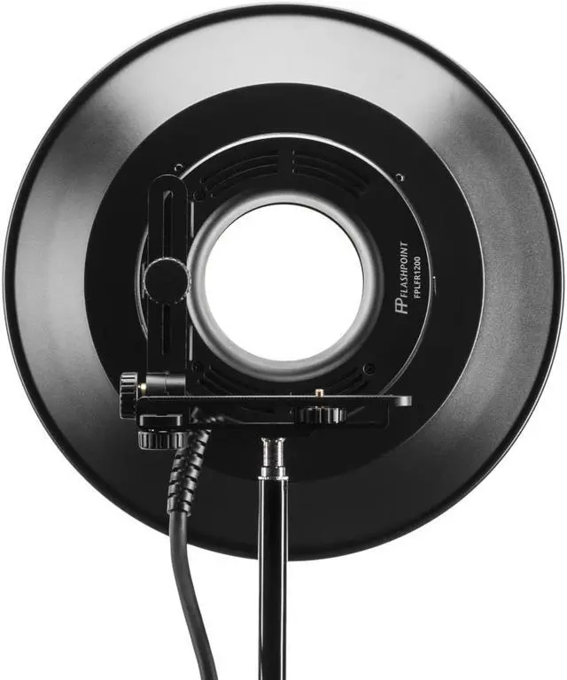 You'll elevate your photography game with the RFT-21S Standard Reflector, specifically designed for the R1200 Ring Flash Head. This high-quality, silver-coated reflector, manufactured by the trusted brand Flashpoint, is a must-have tool for both professional and amateur photographers. The RFT-21S Reflector is expertly crafted to spread light evenly, illuminating a larger area than the ring flash alone. Its shiny, silver interior is not just aesthetically pleasing, but also functional. It effectively diffuses light, reducing harsh shadows and enhancing the contrast in your photos. This rounded, 14-inch diameter reflector is not only durable but also versatile.