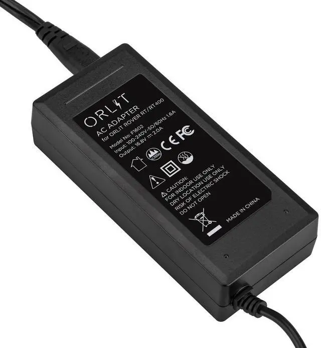 This AC device charges the special ORLIT Battery Power Pack Unit for the Rovelight RT400 Monolight. The rechargeable battery module is a massive interchangeable high energy 14.8 volt Lithium Ion 4400mAh battery, capable of over 400 full power flash bursts on a single charge. Recharging is accomplished directly to the DC port on the battery so you can stay in the shoot with a fresh module while the exhausted power pack is charging. The charge operates worldwide.