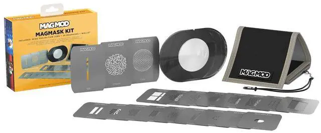 The MagWallet is a convenient way to store and carry all your MagMasks. Pattern Projecting Thing of WonderThe MagBeam's collapsible design isn -t just for portability. Collapse it down all the way, swap in a Wide Lens, add a MagMask, and now you -ve transformed it into a pattern-projecting-thing-of-wonder. Mind. Blown. MagMasks are our custom-made stainless steel 'gobos' that create patterns to project through the MagBeam anywhere you want
