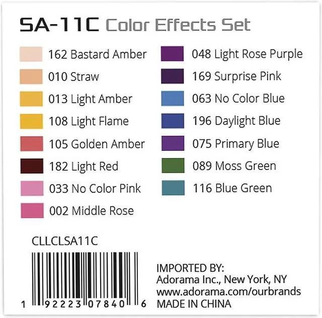Change the color identity of your CLAR S30 Focusing LED with the V-11C Color Effects Set! Contains 30 gels in 15 different colors (2x each) Bastard Amber, Straw, Light Amber, Light Flame, Golden Amber, Light Red, No Color Pink, Middle Rose, Light Rose Purple, Surprise Pink, No Color Blue, Daylight Blue, Primary Blue, Moss Green, and Blue Green