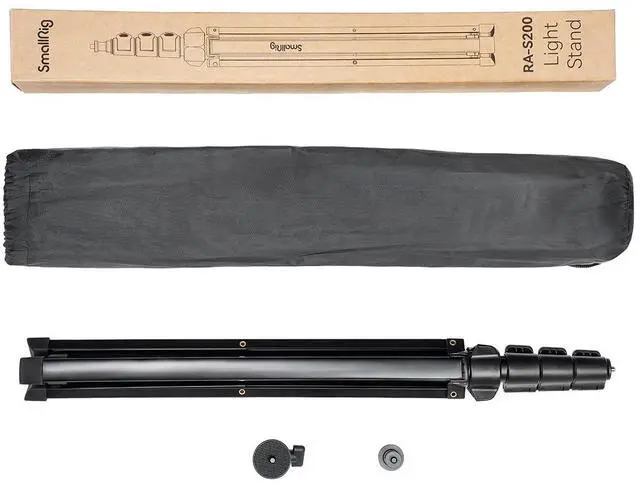 When capturing the perfect shot, the SmallRig RA-S200 Light Stand stands as an indispensable tool for photographers and videographers alike. Crafted from high-quality aluminum alloy, this sturdy and durable light stand ensures reliable performance during your most demanding shoots. With a robust load capacity ranging from 8.1 to 9 lbs., it confidently accommodates heavier lighting equipment, including flashlights, ring lights, panel lights, microphones, and low-watt COB lights, thanks to its versatile 1/4" threaded hole. The RA-S200's height is seamlessly adjustable from 56 cm to a towering 200 cm, allowing for precise positioning and optimal lighting conditions.