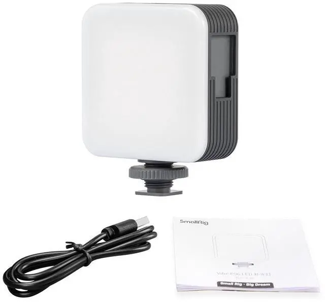 SmallRig Vibe P96 LED Video Light 3286 is a lightweight, portable and stylish mini-LED light, with 0-100% brightness control, CRI95, and a color temperature scale from 2700K to 6500K. Press the on/off button to turn on or off the light, or press and hold it long for lighting mode (max brightness). You can press and rotate the disk button to adjust color temperature and do it again to adjust brightness. The light comes with a built-in 2200mAh lithium-ion battery, which is charged via the included USB Type-C charging cable and features a 105-minute operating time (maximum brightness).