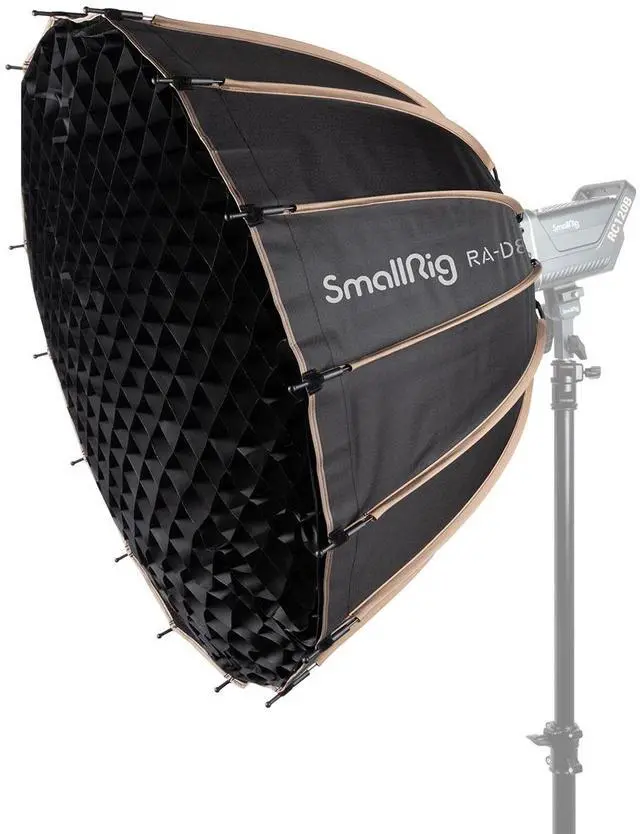 Whether you're aiming for a subtle glow or a more pronounced effect, the RA-D85 adapts seamlessly to your needs. For those seeking precision lighting control, the included honeycomb grid narrows the beam angle to a focused 45 degrees, perfect for accentuating details or creating dramatic shadows. This level of control is indispensable for crafting a mood or directing the viewer's attention within the frame. Durability is a cornerstone of the RA-D85's design. The rugged, waterproof exterior is constructed from Oxford lattice material, ensuring the softbox is impervious to rain and dust. This resilience makes it an ideal companion for both studio and on-location shoots, providing reliable performance in a variety of environmental conditions. In summary, the SmallRig RA-D85 33" Parabolic Softbox is a durable, versatile, and high-quality lighting modifier that is both easy to use and portable. It's an indispensable asset for photographers and videographers seeking to enhance their lighting setup and achieve professional-grade results. With the RA-D85, SmallRig continues to uphold its reputation for providing creators with tools that transform their artistic aspirations into tangible realities.