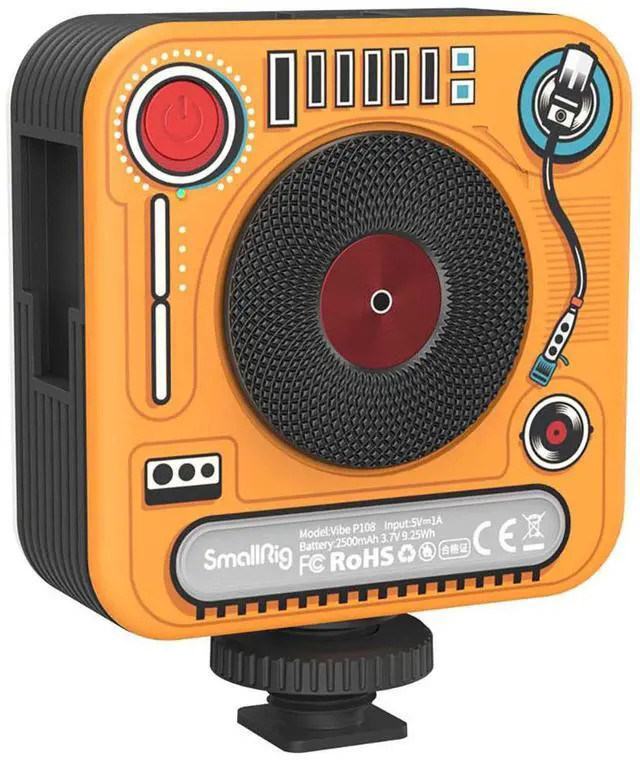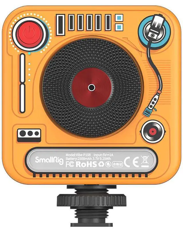After the success of the Vibe P96, SmallRig introduces the Vibe P108 "Phonograph" Limited Edition, a compact and stylish mini RGB LED video light that offers a splash of creativity and fun to your photography and videography sessions. This unique and colorful lighting solution is equipped with 108 high-quality lamp beads, which include a dynamic mix of 28 RGB beads and 80 bi-color beads (40 cold and 40 warm), ensuring a high color rendering index (CRI) of >= 95 for accurate color reproduction. The versatile color temperature range of 2700K to 6500K allows for precise adjustments to match the ambient light or to create a specific mood in your images and videos.