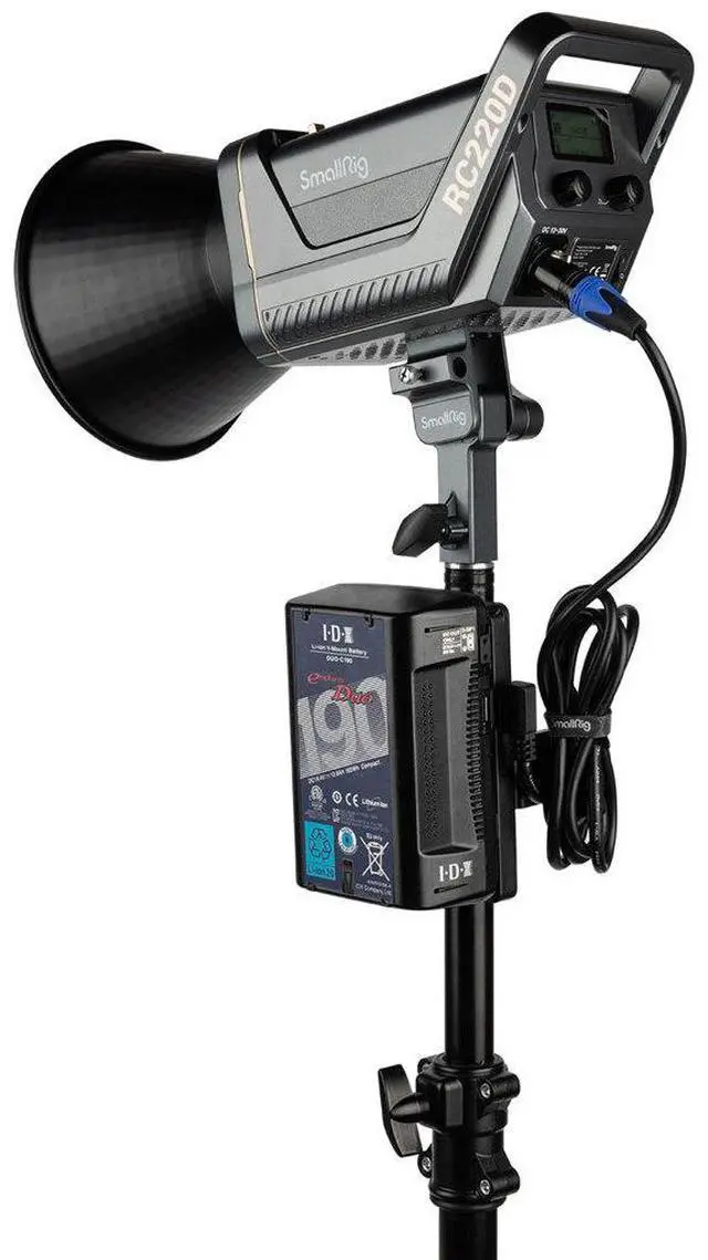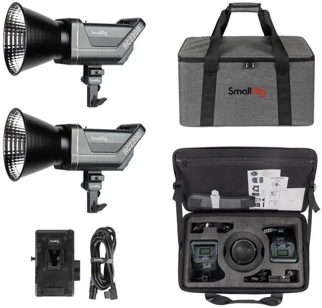 Optimized Battery Power with V-Mount Battery PlateExtend your shooting sessions with the SmallRig V-Mount Battery Plate, featuring a 5.9 ' D-Tap to 3-pin XLR power cable. This setup minimizes downtime, allowing you to focus on your craft without frequent battery changes. The SmallRig RC 220D 2-Light Kit is more than just a lighting solution; it's a tool that empowers your passion, precision, and creativity, ensuring your visual stories are told with brilliance and authenticity.