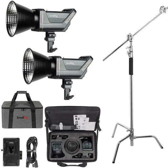 Because the SmallRig RC 220D 260W Daylight COB LED Video 2-Light Kit is engineered for professionals who demand excellence in their visual storytelling, it stands as a beacon of innovation and reliability. This comprehensive lighting kit, bundled with a 10' Turtle Base C-Stand, is designed to elevate your cinematic and photographic endeavors with its superior brightness, precise color accuracy, and user-friendly features. Unmatched Brightness and Color FidelityThe SmallRig RC 220D Monolight is a testament to SmallRig's pioneering design, featuring COB (Chip on Board) technology that delivers a powerful luminance of 10, 100 lux at 3.3 feet.