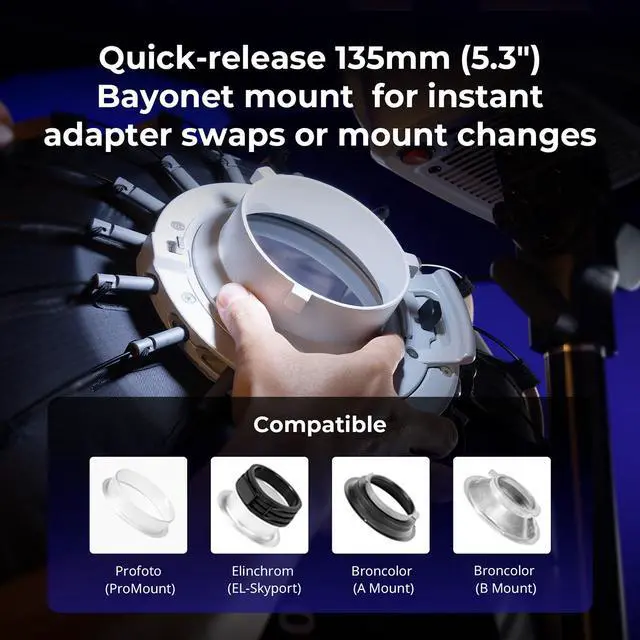 Next-gen creation with double speedFast to Deploy, Flawless to Shoot Effortless Anti-Pinch Deployment Advanced Quick Release Setup Compact Foldable Structure 16-Rib Design Universal Bowens Mount Dual-Layer Reflective Lining Dual-Layer Diffusion Storage Bag & Honeycomb GridNext-Gen Deployment: Simple as Pull & ShootUpgraded one-step instant setupBuilt-In Setup SupportPull to deploy the softbox at once, Extended 10mm ( 0.4" ) rib tips support the softbox during setup, keeping it from dustingCompact, Flat StorageOnly 90cm ( 35.4" ) and 1200g ( 42.3 oz) when storedShoot Soft. Stay Precise16-rib parabolic design delivers smoother, hotspot-free lightDual-Layer DiffusionUltra-soft, even illumination with creamy shadows-no harsh transitionsThickened Reflective LiningMaximizes light output and preserves color accuracyMount It AllQuick-release 135mm ( 5.3" ) Bayonet mount for instant adapter swaps or mount changes