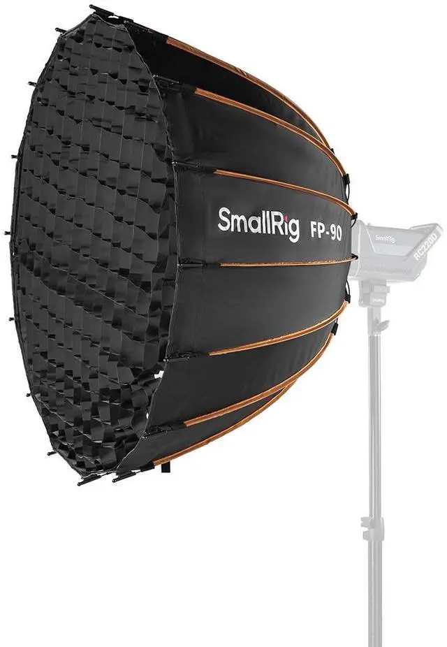 SmallRig FP-90 Quick-Setup Folding Parabolic Softbox 5395 features a universal Bowens mount, ensuring compatibility with the SmallRig RC 220 Pro series and other Bowens-mount light sources on the market. Its innovative quick release umbrella structure enables effortless one-step setup and disassembly, streamlining operations for users. Included is a honeycomb grid that effectively controls light spread, making it ideal for various shooting scenarios. Constructed from industrial-grade dual-layer material with high-reflective coatings, the softbox comes with two diffusion cloths, allowing you to achieve enhanced soft lighting or higher light transmission to suit your needs.