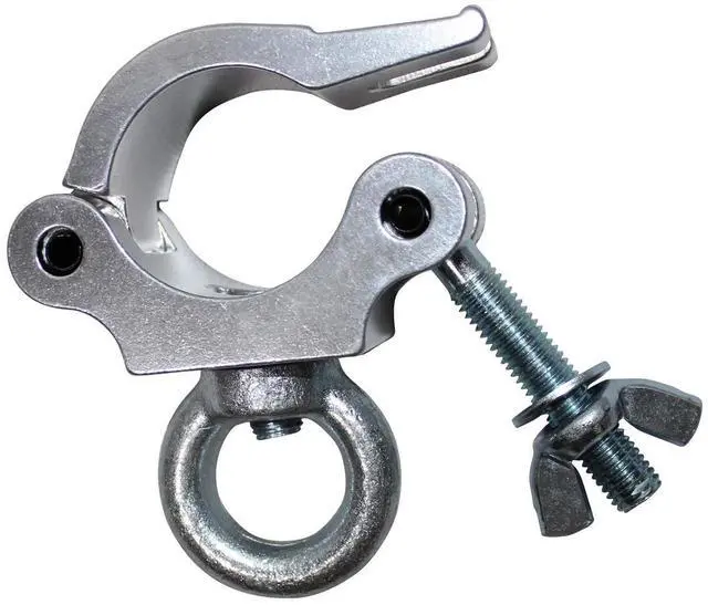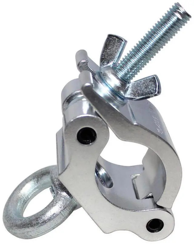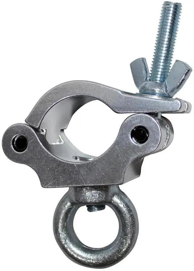Take your event setup to the next level with the T-C8 Pro Clamp with Eyebolt. This versatile and sturdy clamp is specifically designed for 2" tubing, providing a 360-degree wrap-around truss clamp solution that securely mounts heavy fixtures with ease. Crafted from high-quality materials, this durable clamp ensures reliable performance and longevity, making it an essential tool for any event professional. The T-C8 Pro Clamp is a product of ProX, a renowned brand known for its wide array of small to medium temporary roof solutions, perfect for all types of outdoor events.