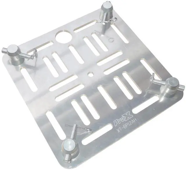 The ProX XT-BP12AH Aluminum Top Plate is designed with versatility in mind, featuring a wide array of slots for mounting. This ensures compatibility with virtually any light you wish to mount. Additionally, it includes a center hole for attaching a speaker spud and a convenient finger hold for easy transportation. This top plate comes with all the necessary hardware for truss mounting, making it a comprehensive solution for your staging needs. As part of ProX Truss's range, this product embodies the brand's reputation for trusted staging support systems, built to the highest standards of safety and performance.