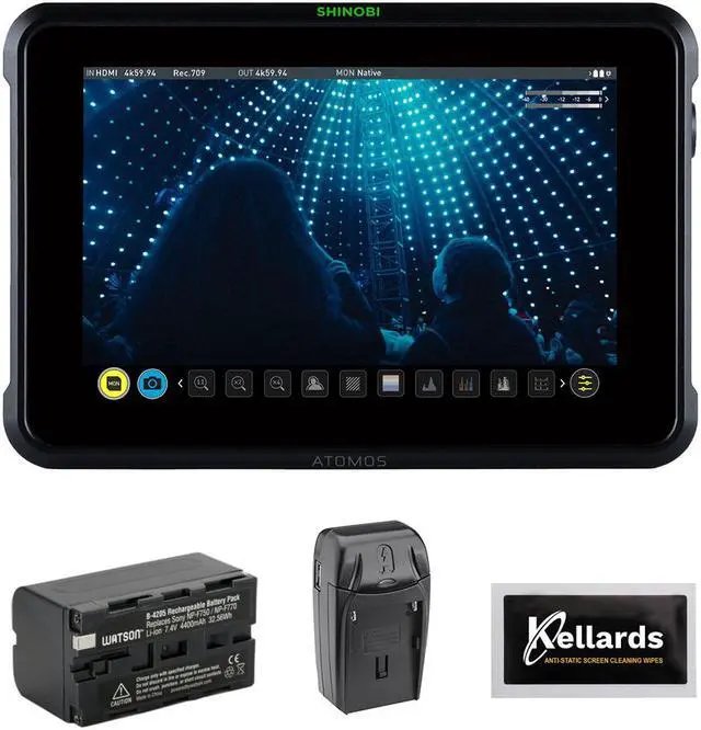 Add a bright, high-resolution monitor to view your 4K/2K footage from a cinema camera such as a Z CAM E2, Panasonic BGH1, or RED KOMODO with the Shinobi 7" 4K HDMI/SDI Monitor Bundle from Atomos. This 7" on-camera monitor features a 1920 x 1200 10-bit FRC IPS display with a brightness of 2200 cd/m², which makes it suitable for use in both exterior and interior conditions. This larger model improves on the original Shinobi as it adds 3G-SDI input and loop output up to 2K60, HDMI 2.0 input and loop output up to 4K60, signal cross conversion, a camera control port, dual L-series battery slots, and future possibilities with its built-in USB and RJ45 ports. The touchscreen Shinobi 7 runs the latest AtomOS firmware that features a variety of onscreen analysis tools such as multi-scope views, exposure, framing, focus assist, waveform, RGB parade, and histogram tools. It also features an SDI card input to load custom 3D LUTs, and it supports SDR and HDR viewing. The AtomHDR display technology allows you to accurately monitor your log gamma footage without having to view flat, washed-out images or use a LUT to compress the dynamic range and color space. The monitor supports popular log formats.