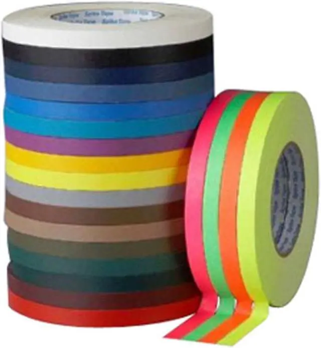 When it comes to high-performance adhesive solutions, the Fluorescent Pink Spike Tape, measuring 1/2" x 45 yards, stands out with its vibrant and eye-catching color. Designed by the reputable brand, Pro Tapes, this gaffer tape is not only colorful but also highly conformable to irregular surfaces, making it an ideal choice for various applications in film and television production. This waterproof and abrasion-resistant tape is specifically engineered to withstand the rigors of stage use. It serves as an indispensable tool for marking stages for actors, providing a clear and visible directional signal even on dark stages.