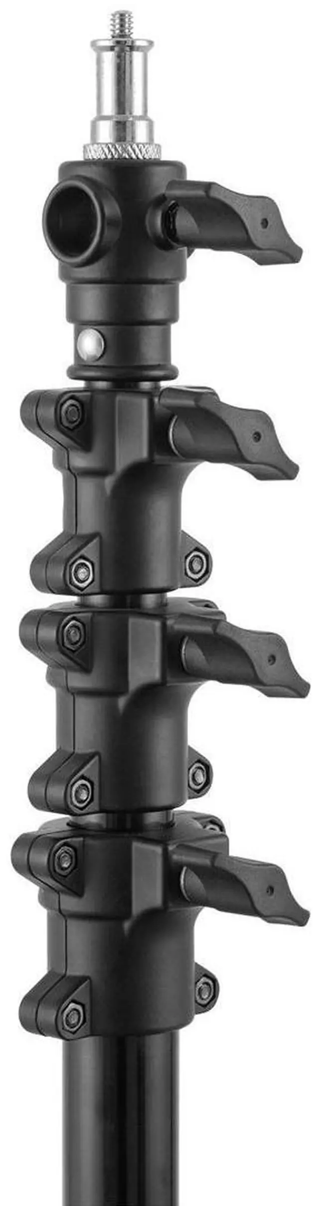 The four-section design provides compact storage and transport options, while the black finish ensures that the stand remains unobtrusive on set and prevents any unwanted reflections. With its solid construction and thoughtful design, the Meking MZ-2800FP light stand is a reliable choice for professionals seeking to enhance their lighting setup with a stand that promises both performance and protection.