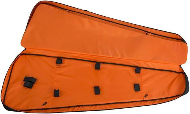 The interior of the bag is lined with padded terylene, a material known for its durability and protective qualities. This soft inner lining acts as a buffer, reducing the impact of bumps and jostles during transportation. The bag's main compartment is finished in a bright orange color for easy visibility and features a divider to prevent your gear from knocking against each other. Additional security is provided by touch-fastening fabric straps and hook-locks, which prevent your equipment from shifting during movement. The bag also allows for customization with impact tape, ensuring your specific needs are met.