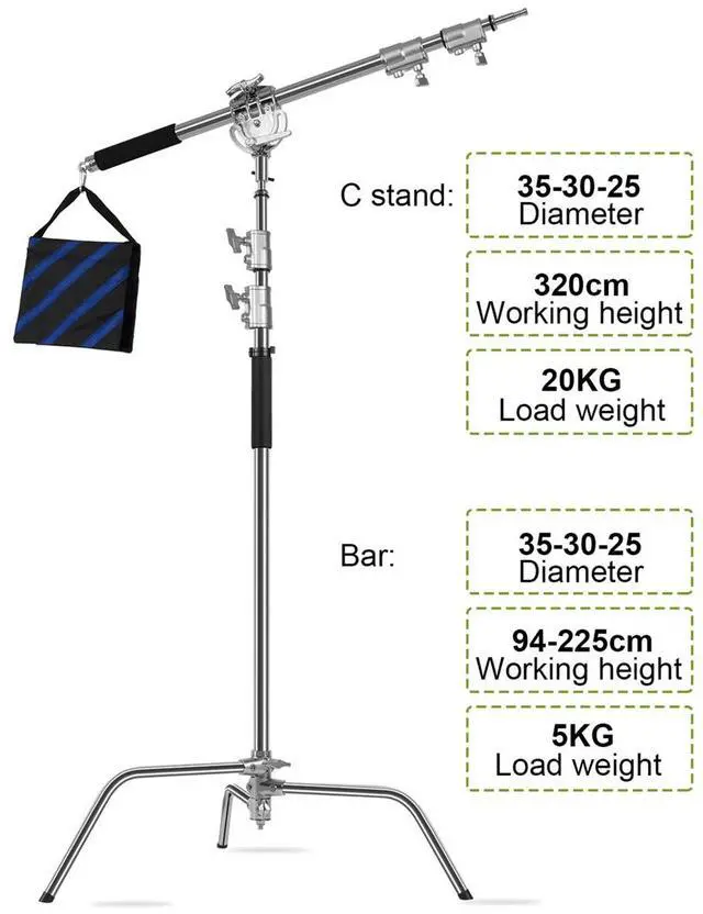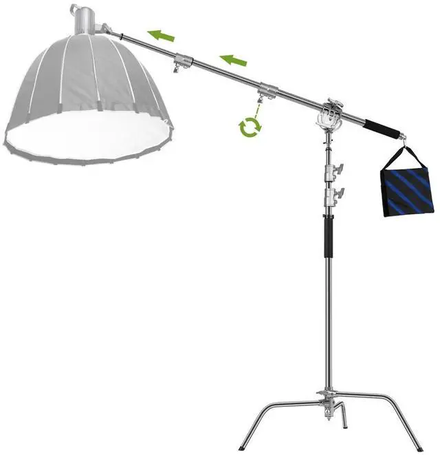 In summary, the GVM C360 10.5 ' Turtle Base C-Stand and Cross Arm Boom Kit is a professional, sturdy, and adjustable solution that provides the versatility and reliability required by industry professionals. Whether for intricate studio setups or dynamic on-location shoots, this C-Stand and Boom Kit is an indispensable asset for achieving precise and creative lighting effects.