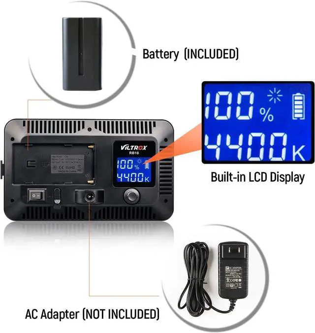 Li-battery (INCLUDED): Dual power support of included Li-battery or power adapter (NOT INCLUDED). More convenience and great for outdoor, indoor or night shooting work.