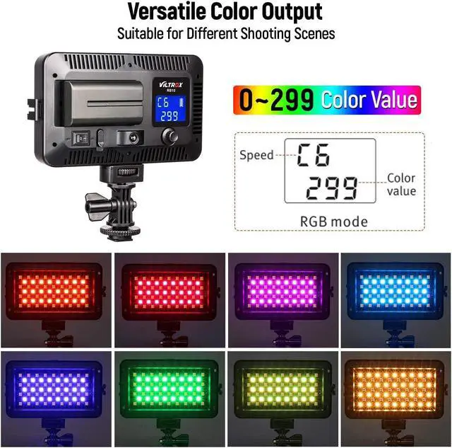 Colorful Lighting Sources Output: With 24pcs RGB LEDs, this color video light provides 299 different colors and allow you to modify each color value without needing gels. The RGB mode is perfect for adding colors to a scene on the photo, lighting a bar scene or as a background light.