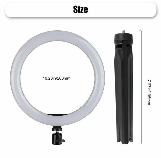 Brighter Selfie Ring Light: 10" Bright Selfie Ring Light. This ring light kit can make your visual world more beautiful and brilliant. Perfect for makeup, Youtube lighting,circle light,selfie lighting, photo lighting,camera lighting, portrait video studio photography, live streams, blogger, hair salon, etc.