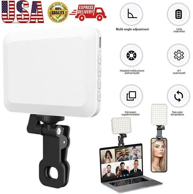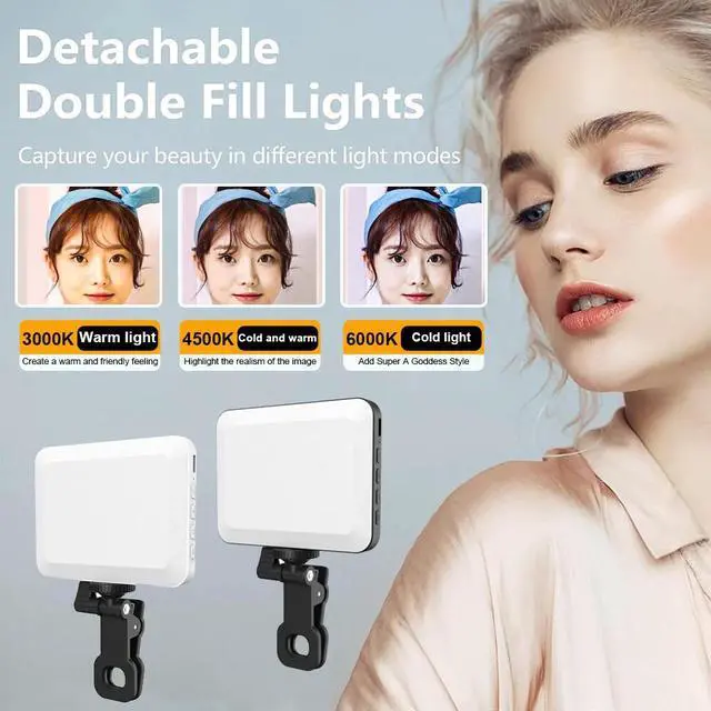 Wide Applications:The fill light features 2 holes for phone clip for fixation,which adds more possibility for its versatile use. Also,the clip comes with a soft silicone pad,which protects the screen and enhances stability. Perfect for emphasizing details,photography,filming,makeup application,macro photography,live,and etc..