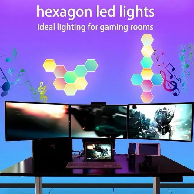 8 Pack Hexagon Lights for Wall LED, Hexagon LED Lights That Sync with Music, APP & Remote Controls Hex Lights, RGB LED Wall Panels for TV, Bedroom, Living Room, Game Room Decor (Multicolor)