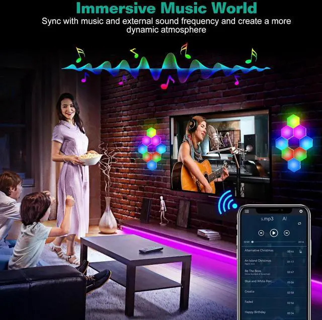 Dance Along With Music:Come with phone Mic and external Mic sound source options,our game wall LED panel can receive sound waves and quickly change colors,pulses to the rhythm,allowing you to immerse yourself in the music and dance with it,adding to the atmosphere of an intense event!