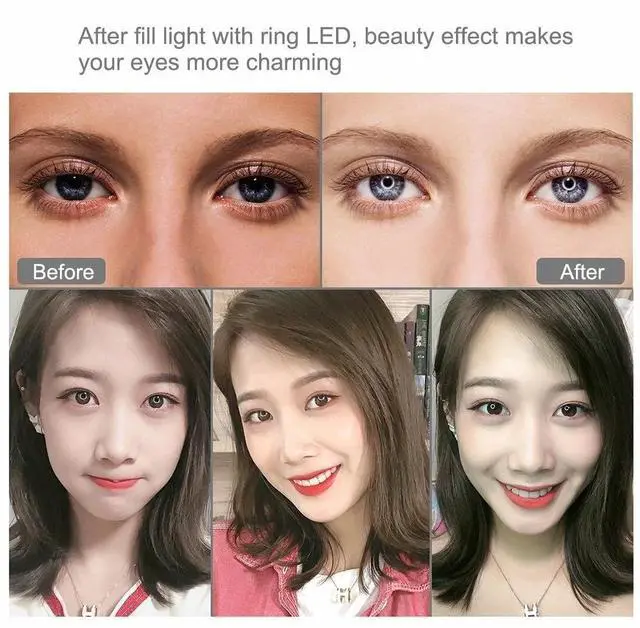 The ring light is made of 40pcs energy-saving LED beads, it heat dissipation is excellent, constant current drive and high color rendering, soften the light source and enhance skin tone in portraits photography.