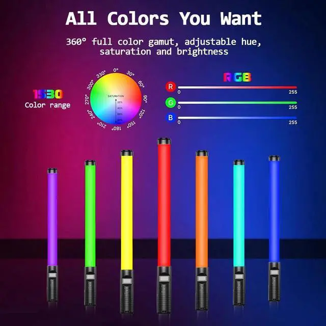 Wide Color Temperature Range & RGB Lighting: This light stick covers a broad color temperature range from 3000K to 8500K, ensuring it suits various lighting conditions. It also boasts RGB color tone capabilities, with up to 16 million color combinations available for creative lighting effects. The CRI of 85 and TLCI of 98 ensure accurate color reproduction for high quality results.