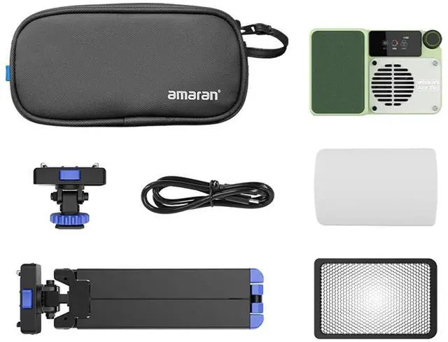 For content creators seeking a versatile and portable lighting solution, the Amaran Ace 25c 25W RGBWW On-Camera LED Light Kit with Mini Tripod and Light Control Grid offers an all-in-one package designed to enhance your creative projects. This comprehensive kit includes a powerful 32W full-color LED light, perfect for on-the-go shooting with limitless color control to suit any scenario. The Amaran Ace 25c stands out with its innovative Ace Lock quick-release mount, which provides double the brightness, battery life, and charging speed compared to other pocket-sized lights. This compact yet brilliantly bright light ensures your content shines with the perfect shade, making it an essential tool for any creator's kit.