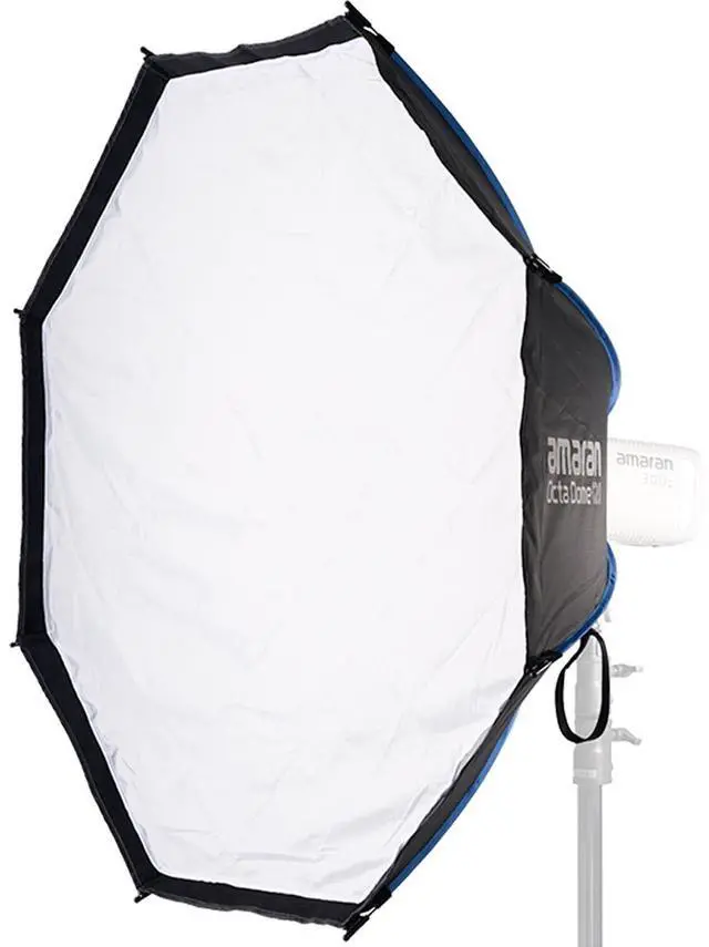 The amaran Octa Dome 120 47.24" Bowens Mount Softbox is an essential tool for photographers and videographers seeking to achieve soft, round lighting while optimizing space. This 120cm (4ft) octagonal softbox is designed with a one-snap setup, allowing for quick and effortless assembly and disassembly in just one second. The innovative speed ring handle ensures that you can lock the softbox into its octagonal shape swiftly, enabling you to focus more on your creative projects rather than setup time. Engineered for portability, the amaran Octa Dome 120 features a flat-pack design that collapses into a slim, compact profile.