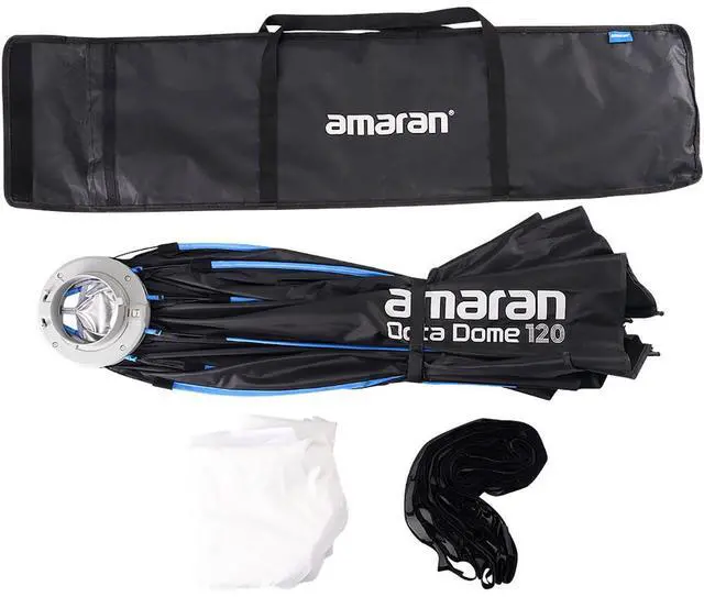 Included with the amaran Octa Dome 120 are essential components to refine your lighting setup. The package comes with a diffusion cloth and inner baffle to create a natural, soft glow on your subjects. Additionally, the included control grid allows you to add depth and dimension to your images, giving you a comprehensive creative toolkit to achieve your desired lighting effects. All these components are conveniently packed in a carrying bag, ensuring that you have everything you need for your next shoot.