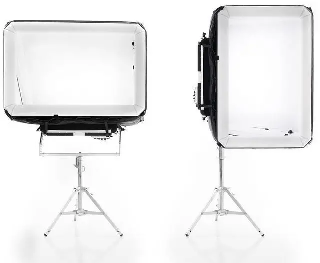 Installation is straightforward: loop the anti-spill cover over the fixture and secure it with the adjustable straps' buckles. Unlike conventional front-facing softboxes, the AIRGLOW creates a unique 45-degree triangular bounce. The back wall forms the hypotenuse, directing light out of the perpendicular side, resulting in a beautifully diffused illumination. This innovative design allows for a choice of bounce fabrics, including SNAPBOUNCE, Hard Silver Diffusion for more intense lighting, and both bleached and unbleached Muslin for varied light quality. The AIRGLOW's versatility is further enhanced by its ability to be used in either a horizontal or vertical orientation, making it a single, easily repositionable fixture that simplifies setup. Its lightweight construction and quick assembly eliminate the need for additional stands, reducing clutter on busy sets and leaving a smaller footprint. For convenience, the inflatable AIRGLOW frame can be inflated or deflated while attached to the light panel or detached, and it packs neatly into a custom DoPchoice bag along with the air pump for effortless transport and storage. This complete kit is an essential tool for filmmakers and photographers seeking a portable, efficient, and high-quality lighting solution.