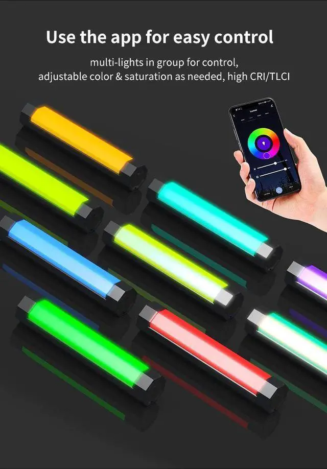 "Adjustable color and saturation for full control* Easily set up with app or remote*Built-in 4000mAh USB-C rechargeablebattery"|P67 waterproof light wand*3000-6000K CCT for creative photos