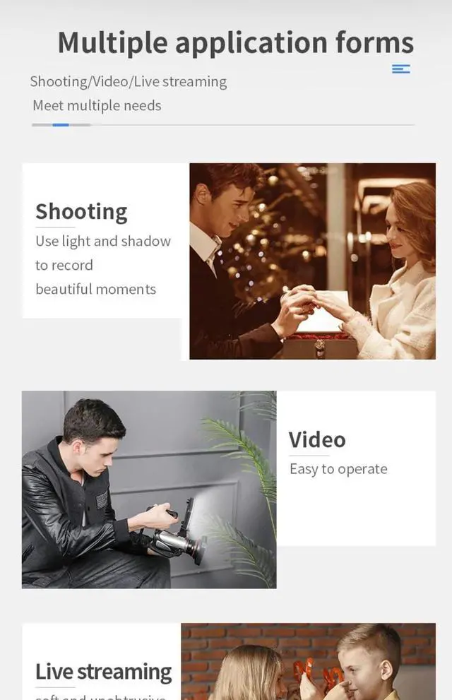 --The back of fill light has a LED display to show the color temperature, brightness and power for photographers to confirmthe exchange of power.