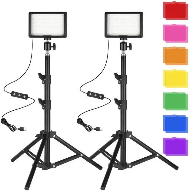 LED Photo Video Light 2-Pack, Dimmable 5600K USB LED Continuous Light Photography Light with Tripods and Color Filters for Photo Studios, YouTube, TikTok, Video Recording, Game Streaming