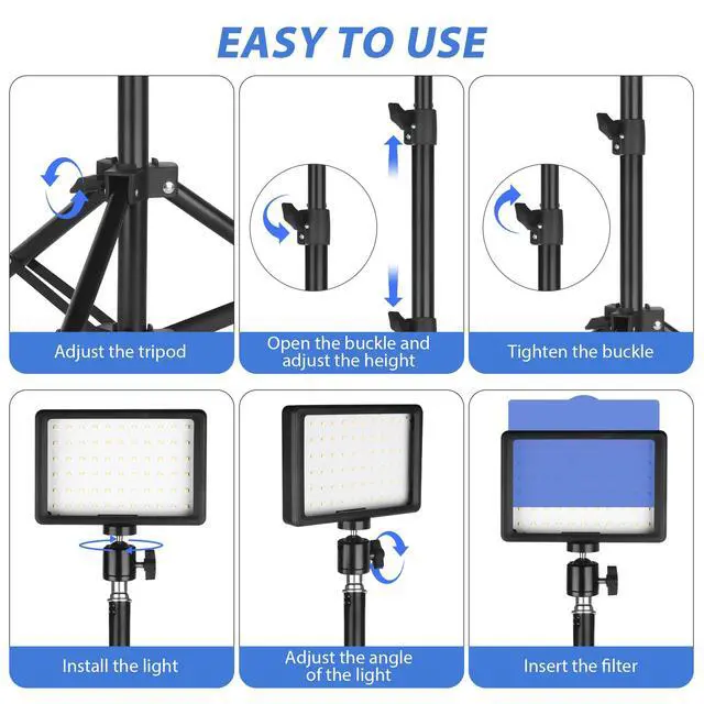 • Adjustable LED Panel Kit: The small LED panel light can be adjusted 180 degrees to meet your different requirements of suitable shooting angle; the brightness of the USB LED light can be adjusted from 10% to 100%.