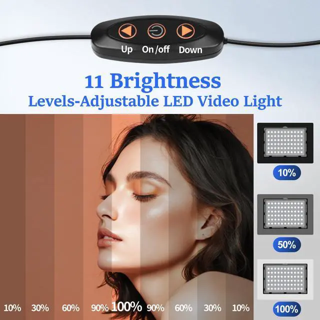 9 Color Filters and Dimmable Brightness The photography lighting kit comes with 9 color filters (white, red, pink, orange, yellow, green, blue, light blue, purple) to easily meet your needs for creating color and atmosphere. The brightness level can be controlled between 10% and 100% through cables. Versatile lighting effects are essential for filmmakers, portraits, product photography, Youtube podcast, videos, live stream, gaming