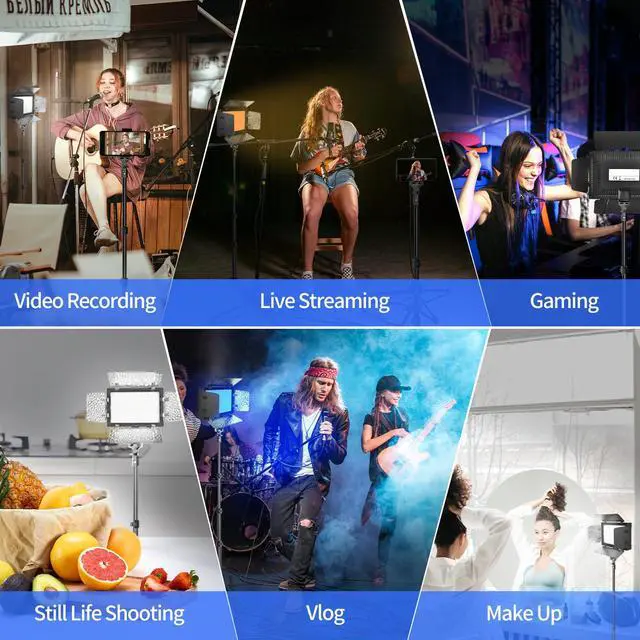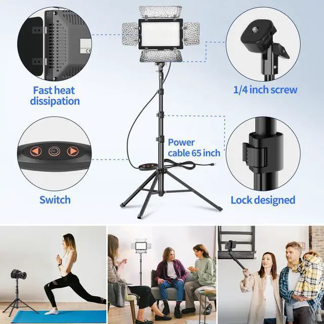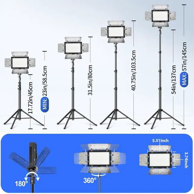 Photography Lighting KitThe small LED panel light (5.51×3.74 inches/14×9.5 cm) can be 180 degree adjustable, meeting your different demands on suitable shooting angle, the brightness of the light can be adjusted from 10% to 100%. Equipped with 9 color filters, creating a more diverse and colorful lighting effect.