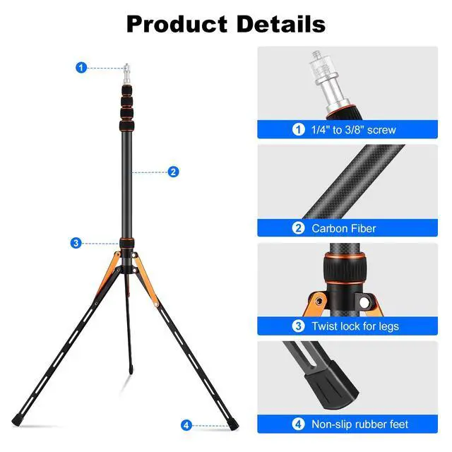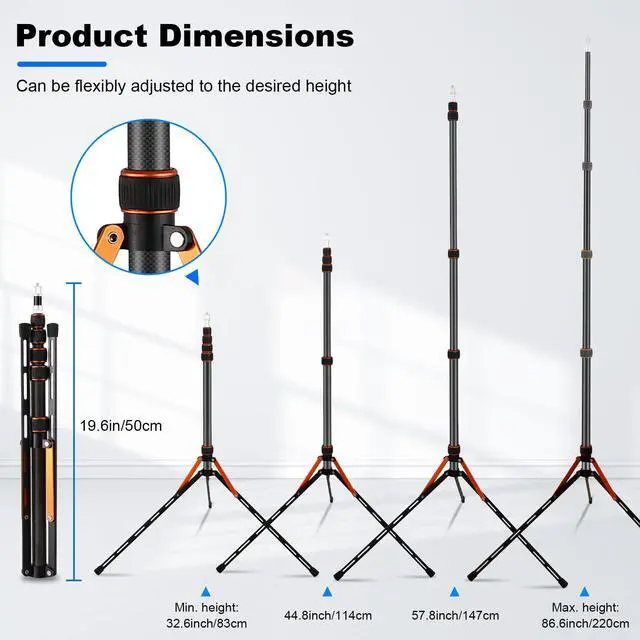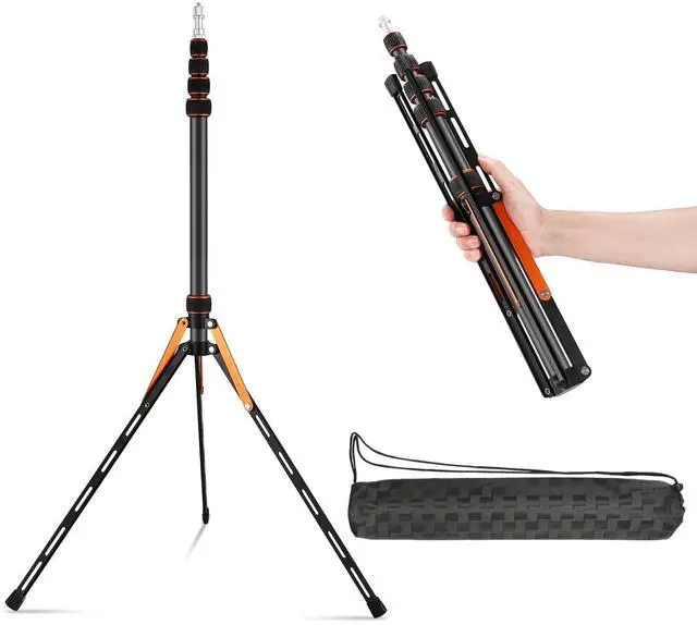 Portable Light Stand Adjustable 7ft Carbon Fiber Lighting Tripod Stand with 180° Reversible Leg Tripod Light Photography Maximum Height of 86.5 /220cm for Flash Softboxes Camera