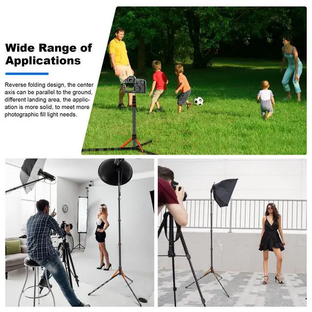 Múltiples aplicaciones:este trípode multifuncional es adecuado para diversas aplicaciones de fotografía y videografía,como vlogging de viajes,transmisión en vivo,retratos de estudio,eventos al aire libre,fotografía deportiva y fotografía macro.