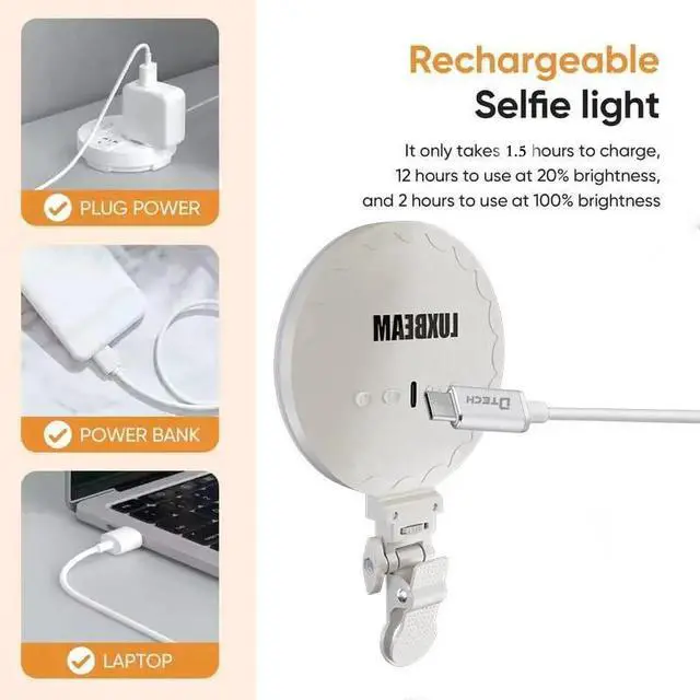 - [USB Fast Charging & Safety Protection]The ring light for laptop is equipped with a Type-C port and a high polymerization lithium battery, which not only charges faster and more conveniently, but also has dual functions of preventing overcharging and short circuits, fully ensuring your safe use.Besides, we have product quality assurance to provide you with high-quality services, including repair, replacement, and usage instructions and so on.