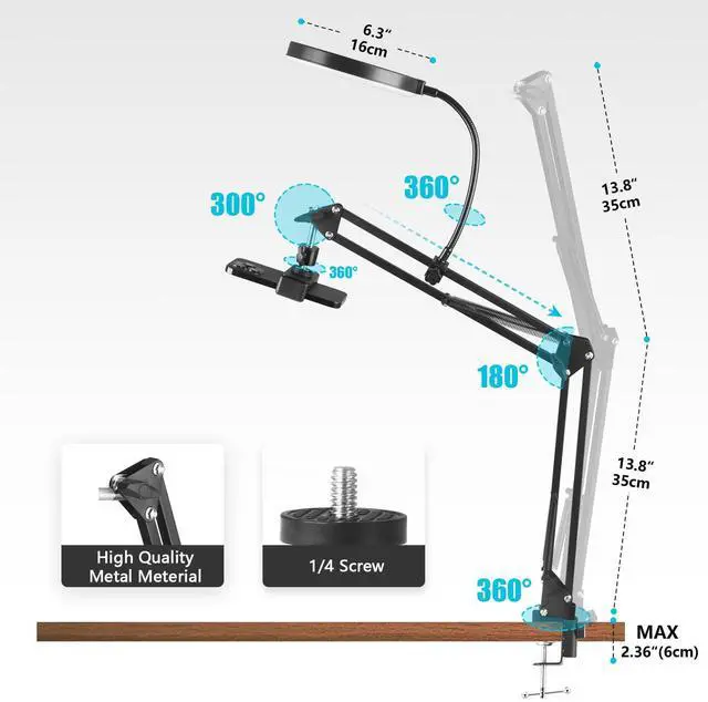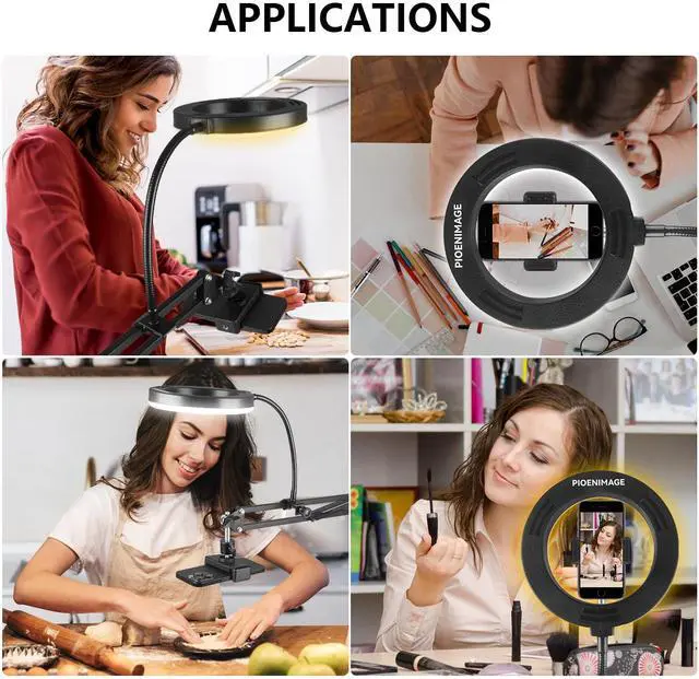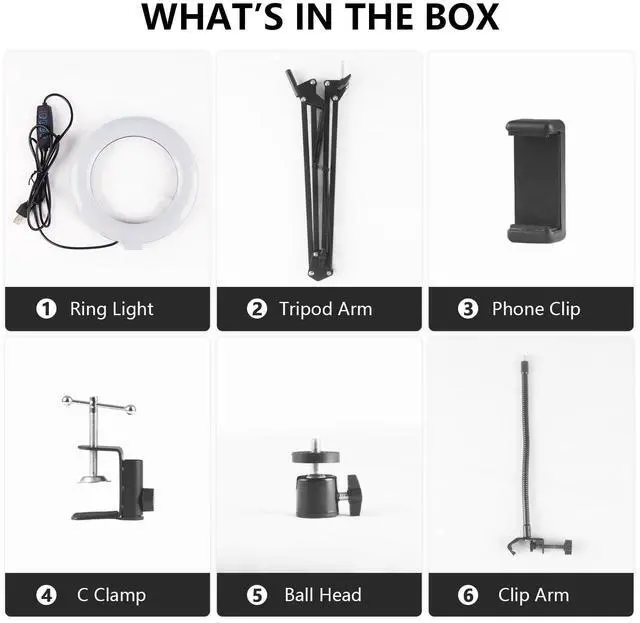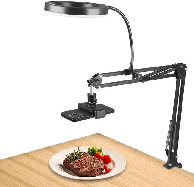 • Flexible Angle AdjustmentThe 6 - inch ring light with an adjustable arm can be pulled to any angle and distance. It can be precisely positioned for overhead food photography or makeup tutorials, providing ideal lighting for a professional shooting effect
