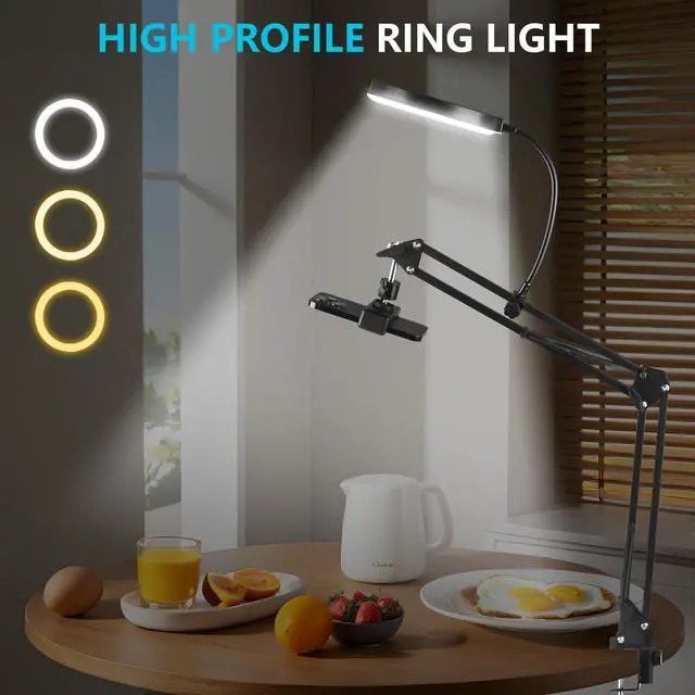 6" LED Ring Light for Desk, Overhead Camera Mount with Ring Light and Phone Holder, Overhead Phone Mount Arm Stand Studio Lights for Photography, Video Recording, Live Stream