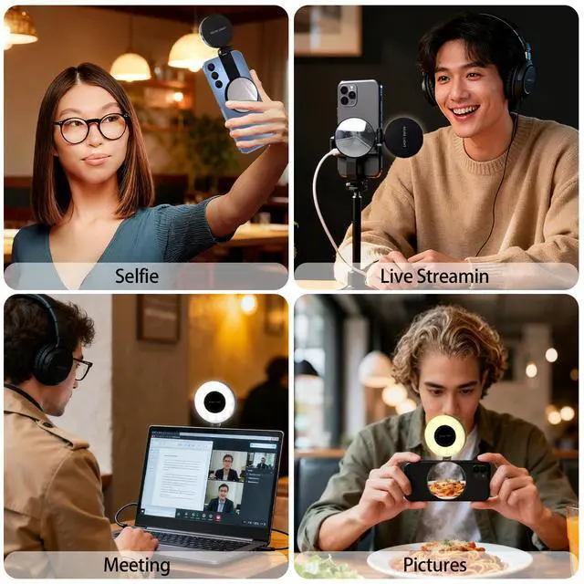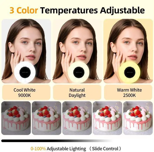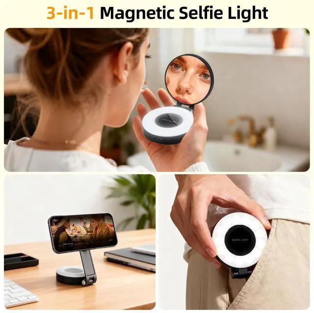 Adjustable Lighting Modes: This magnetic selfie light features three adjustable color temperatures2500K (warm white), 4500K (natural daylight), and 9000K (cool white)with seamless dimming from 10% to 100% brightness via an intuitive slide control. With a high CRI 95+, it delivers vibrant, true-to-life lighting perfect for selfies, TikTok livestreams, Zoom meetings, YouTube vlogs, and professional video content.