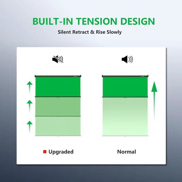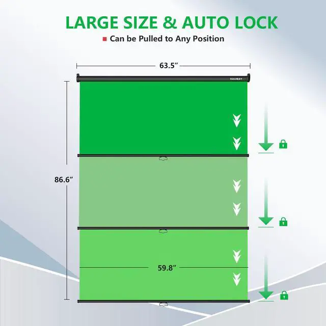 Screen Size: Our retractable pull down green screen measures 59.8"(W) x 86.6"(H), providing ample space for capturing dual-person video content.