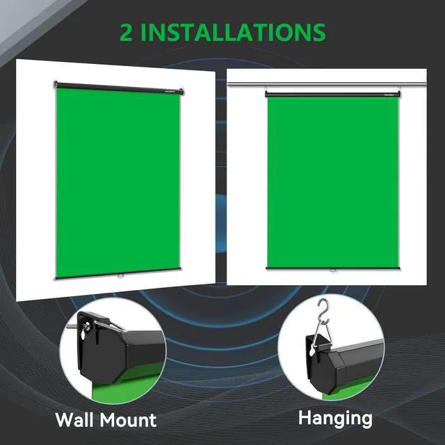 2 Installations: Our retractable pull down green screen offers two installation methods: wall hanging and hanging, providing you with the flexibility to choose the option that best fits your needs.